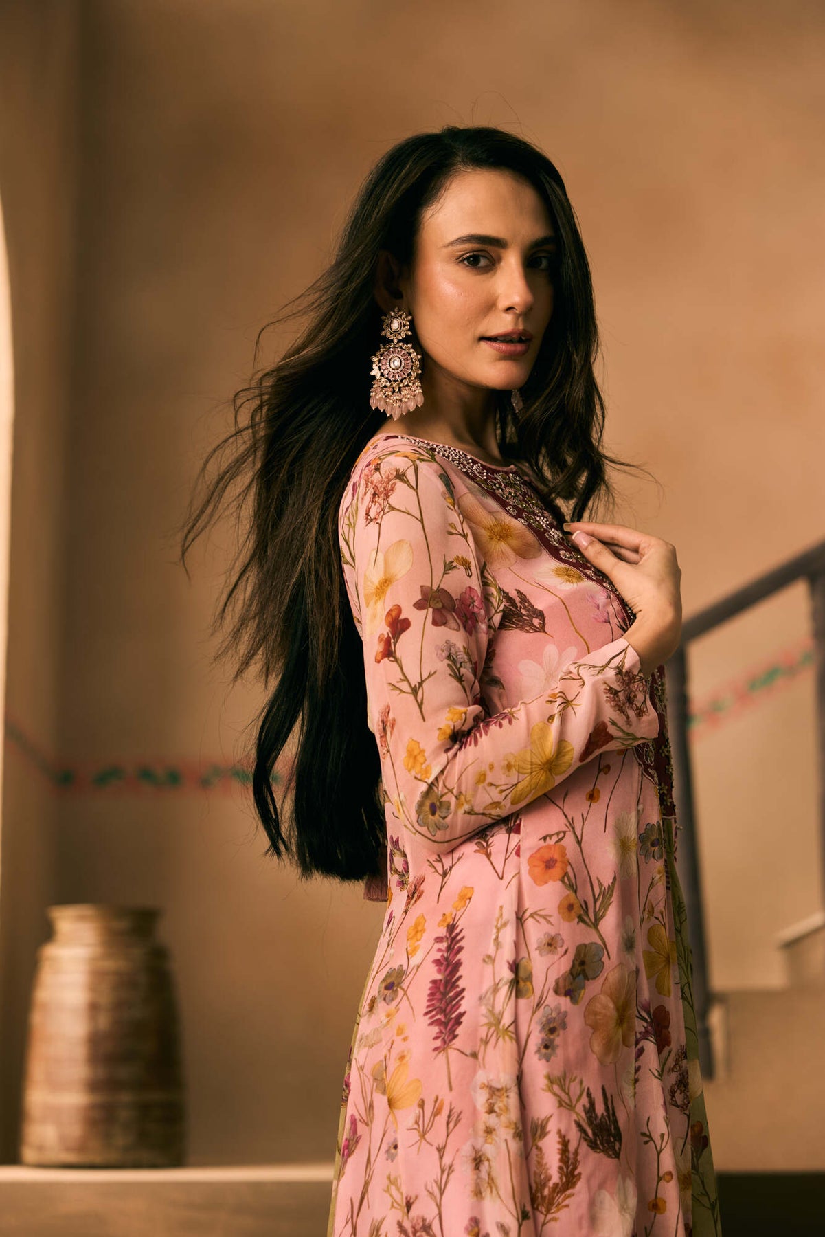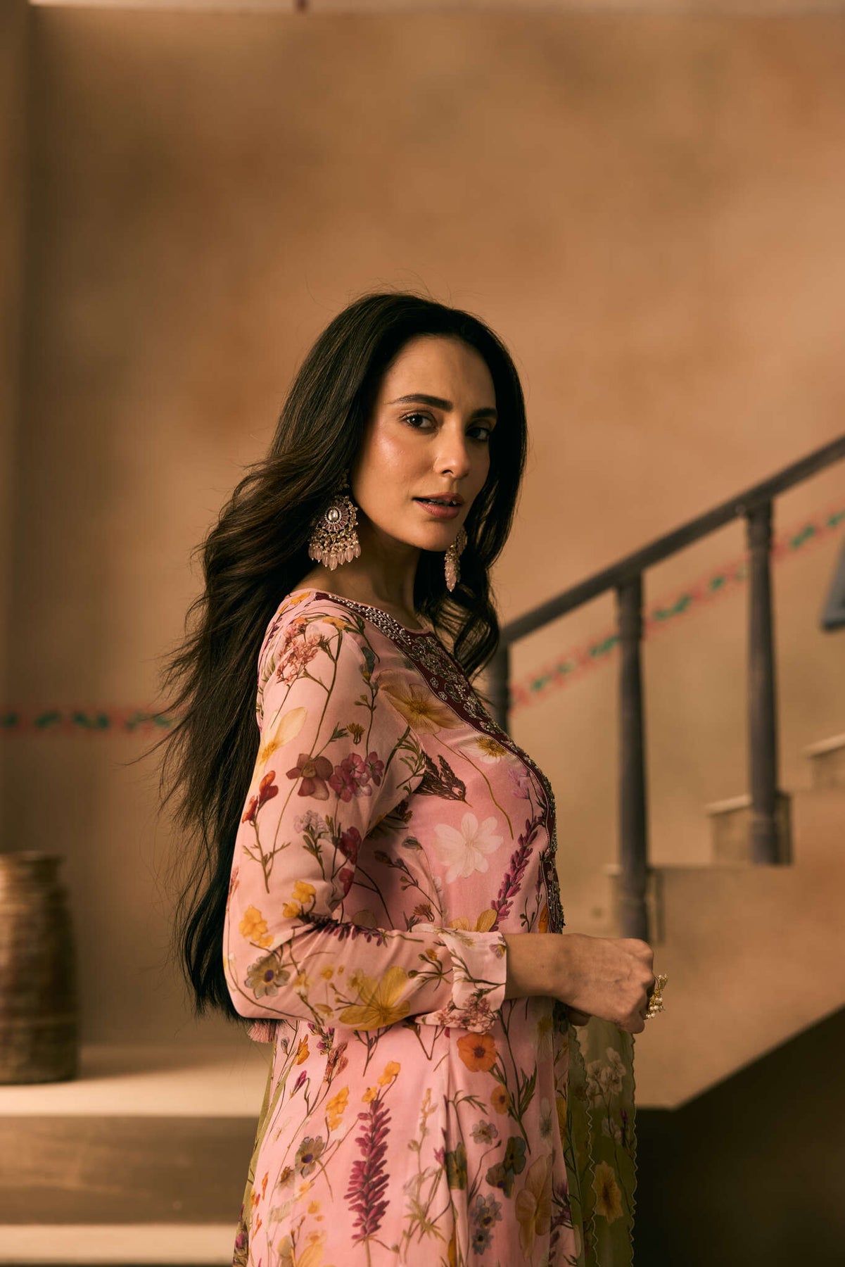 Angela Printed Pink Kalidar Set