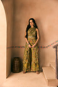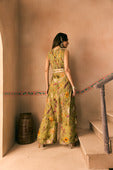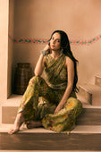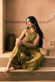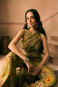 Featuring a viscose organza Printed Crush yoke and embroidered belt with cutdana, beads and thread work teemed with a Printed Flared